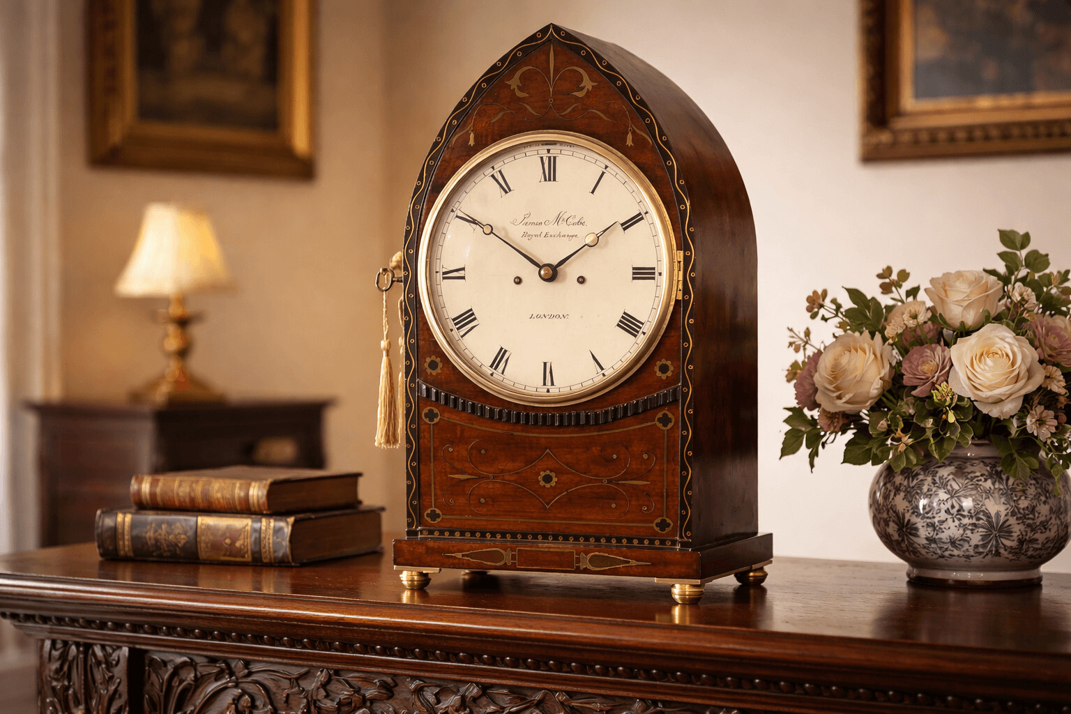 This James McCabe bracket clock for sale is offered at £4,750 and represents a rare chance to acquire a museum-quality timepiece with genuine historical importance, outstanding craftsmanship, and impeccable provenance.